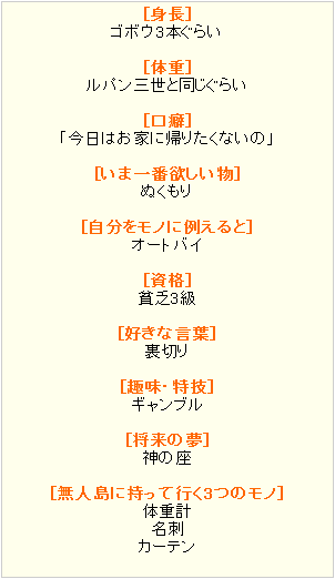 今日はプロフィールメーカーを見つけたので、早速やってみました☆