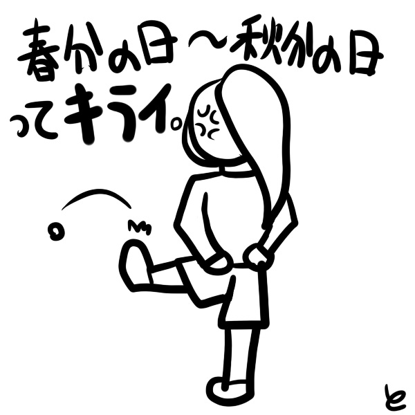 とも、春分の日~秋分の日がすごくを10個つけるくらい嫌いです。つまり、