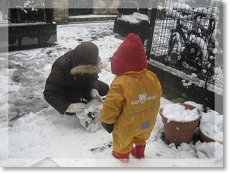 ウチの庭は、すごい積もってて、皆で雪合戦したりしました。