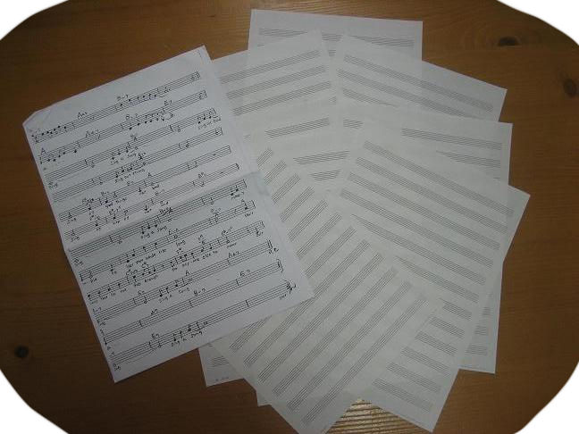 やだなぁ、これ五線譜と楽譜ー。