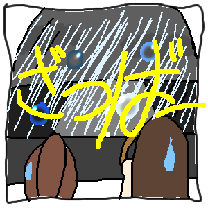 ガラスにぽたぽたと強いしずくが。