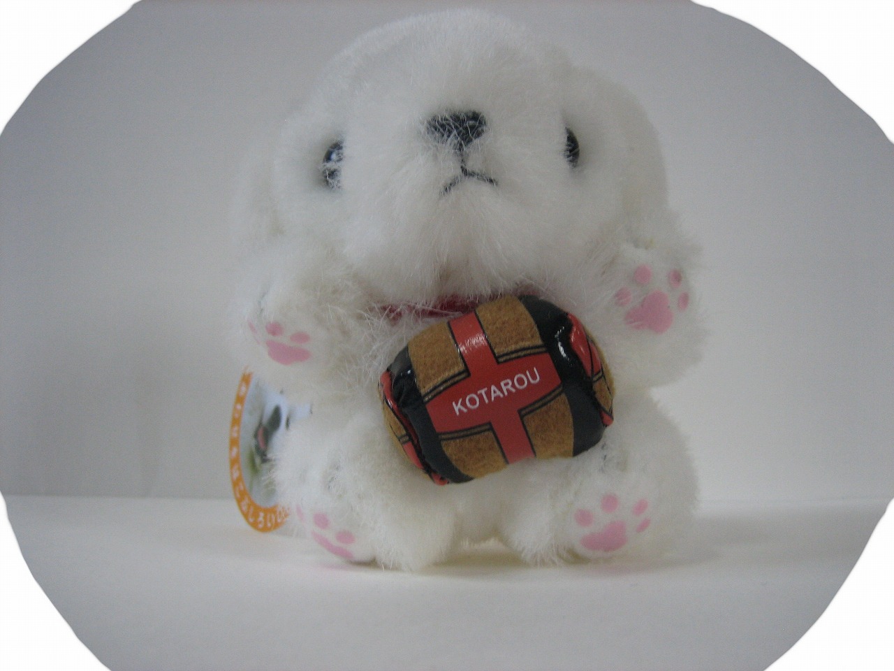 この犬が持っている物に書いてあるローマ字を読んでみましょう。