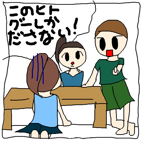 だから、この前英語教室行って、男の子とじゃんけんをしたらグーばかり出してしまい