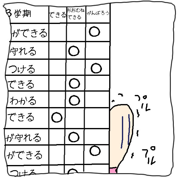 さて、通知表ですが、昨日言ってたほど、そんなにあちらこちらに