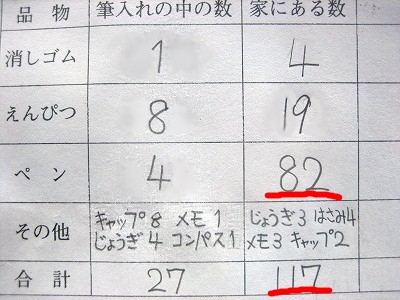 家にある自分の文房具を調べてきなさい、と言われて