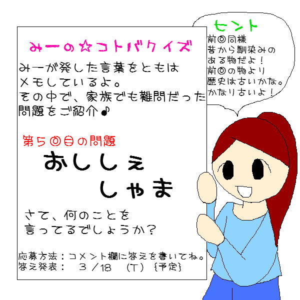 大人気(?)みーの☆コトバクイズ5回戦をしたいと思います!