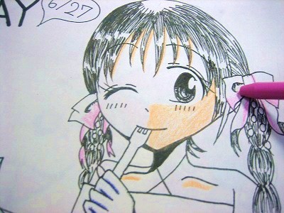 今、イラストの主線を描き終わって色塗りに入ったとこです
